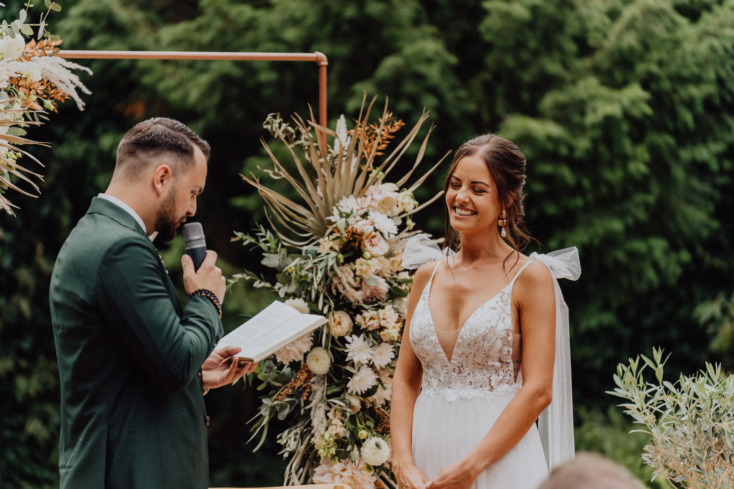 Après deux annulations dues au Covid, Sandrine et Pascal ont réinventé leur mariage en 2023. Dans une serre baignée de lumière estivale, ils ont vécu une cérémonie émouvante, conduite par le frère de Sandrine et entourés de leur famille. Une célébration unique et authentique, en suisse allemand, marquant un nouveau départ plein d’amour et de chaleur.